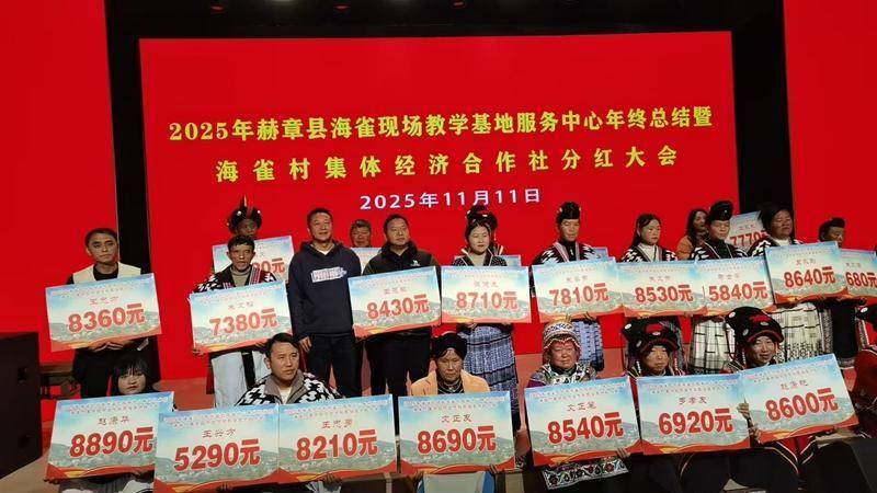 初冬的海雀,淅沥的小雨夹杂着连绵的阴冷,群众内心却暖意融融。“双十一”当天举行的2025年海雀现场教学基地服务中心年终总结暨海雀村集体经济合作社分红大会上,27户村民喜领分红金共23.38万元。由于种种原因,分红没有去年多,但大家的喜悦却不减反增,因为近年来总体生活蒸蒸日上带来的喜悦,胜过了一切。