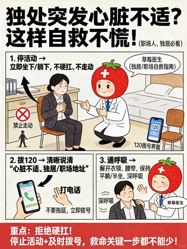 特别提醒:一旦出现上述任何一种信号,需立即停止所有活动,原地休息并拨打120急救电话,切勿用力咳嗽、捶打心脏,更不能自行驾车前往医院,避免加重病情。